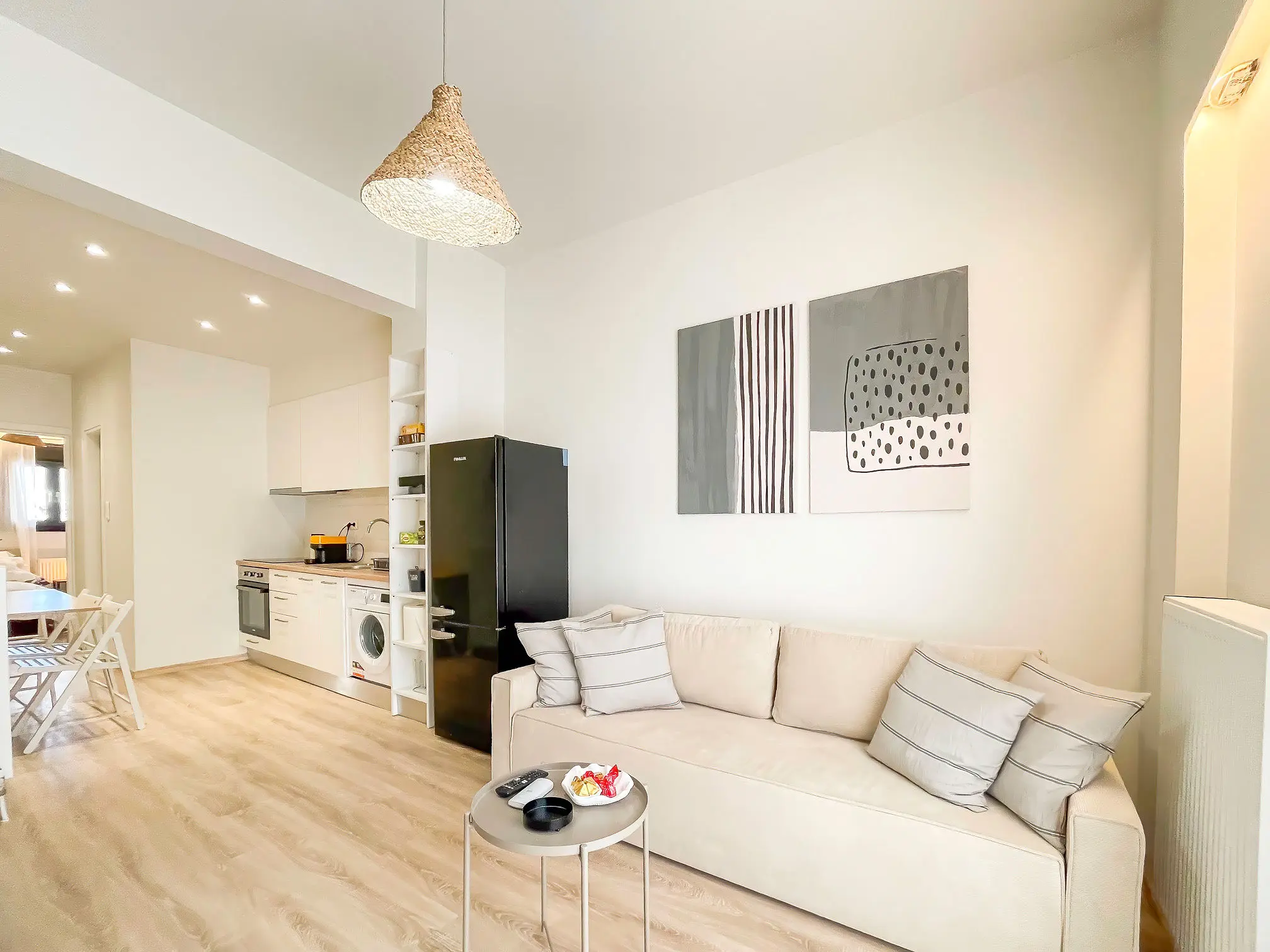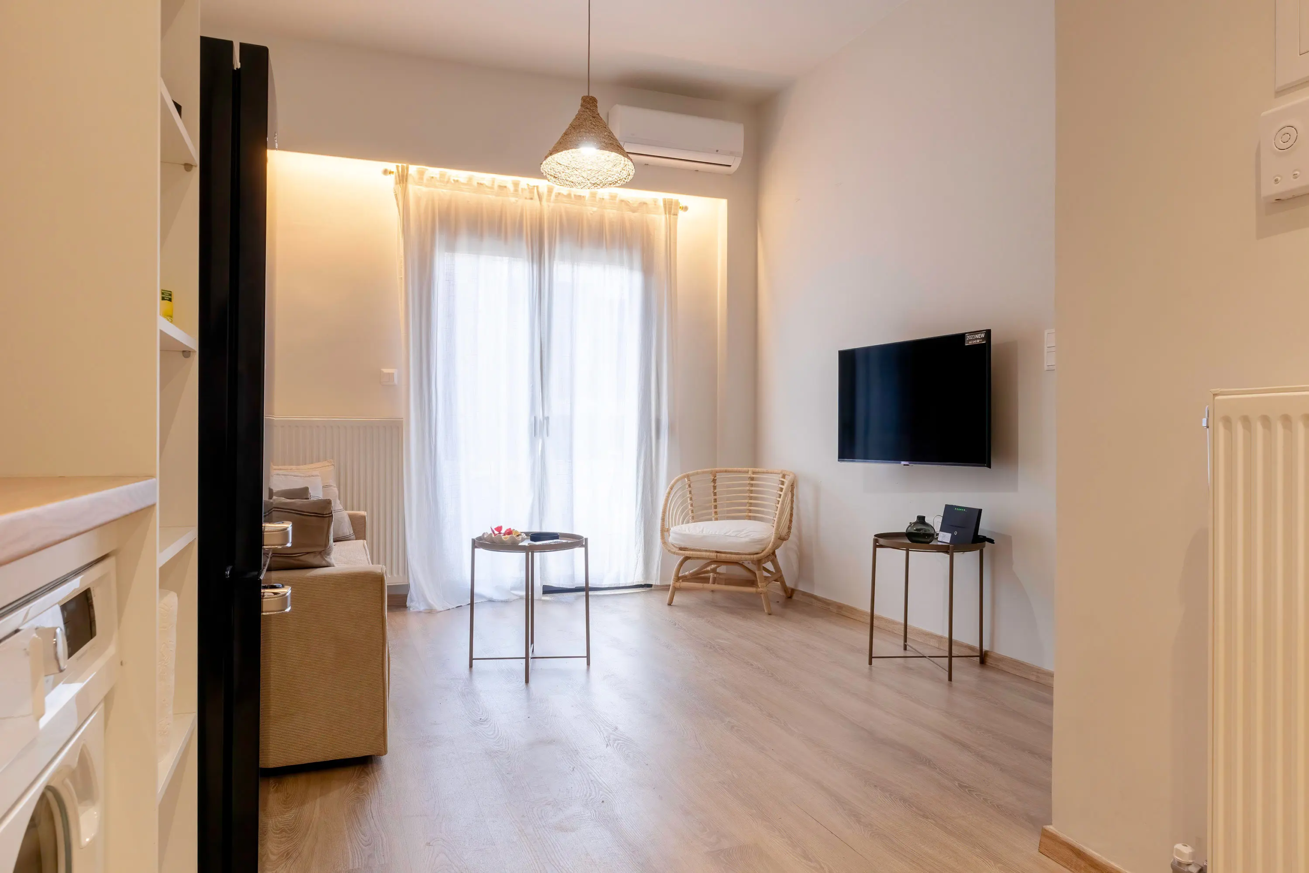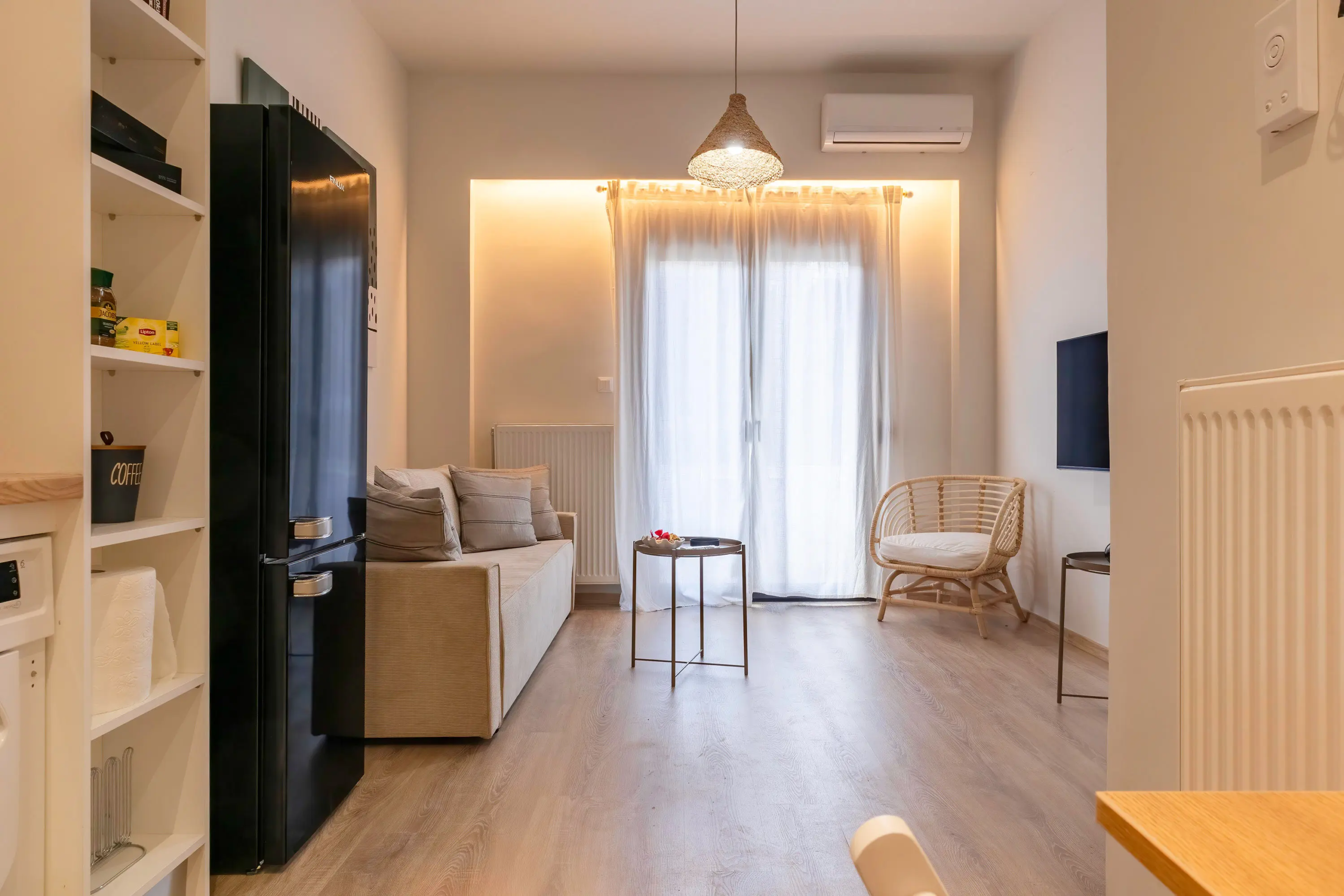 Relax with the whole family at this peaceful place in Koukaki. This 2-bedroom apartment exudes contemporary charm and comfort. Bright and airy, it features a spacious living area, fully-equipped kitchen, and modern amenities. Both bedrooms offer cozy retreats, while a balcony provides a serene spot to unwind. With its prime location near cafes, shops, and iconic landmarks like the Acropolis, this apartment offers a perfect blend of urban convenience and cultural immersion